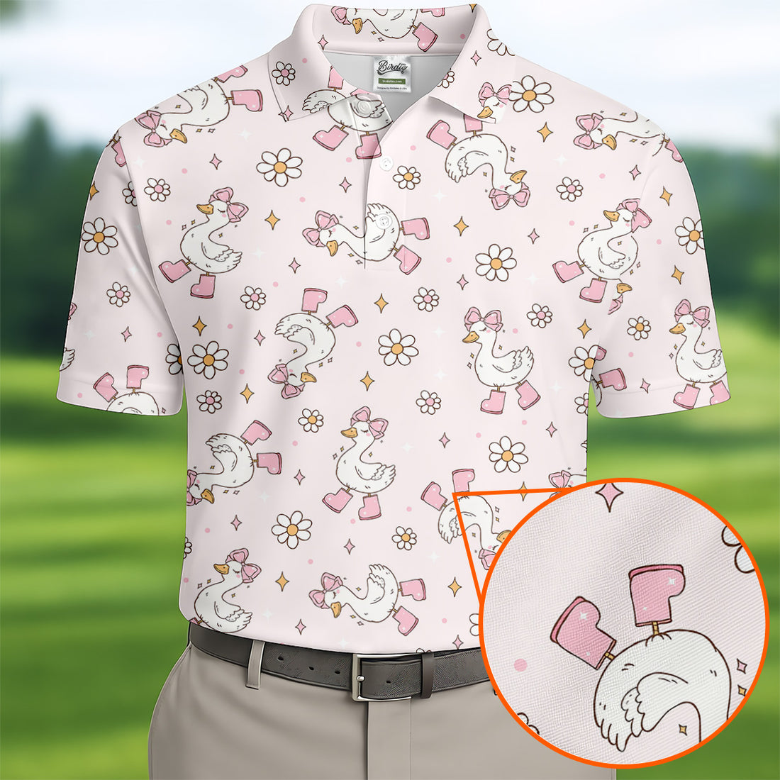 Silly Goose Seamless Pattern Pink Golf Shirt, Cute Golf Outfit, Golf Gift For Men, Golfing Apparel