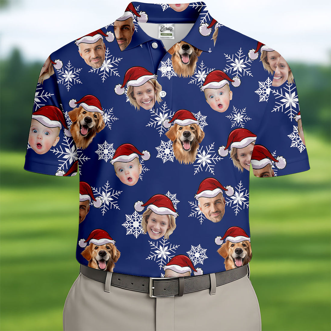 Custom Face Navy Christmas Golf Tops For Men, Polo Shirts For Men, Christmas Golf Gift
