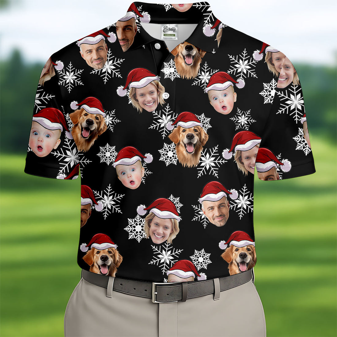 Custom Face Black Christmas Golf Tops For Men, Polo Shirts For Men, Christmas Golf Gift