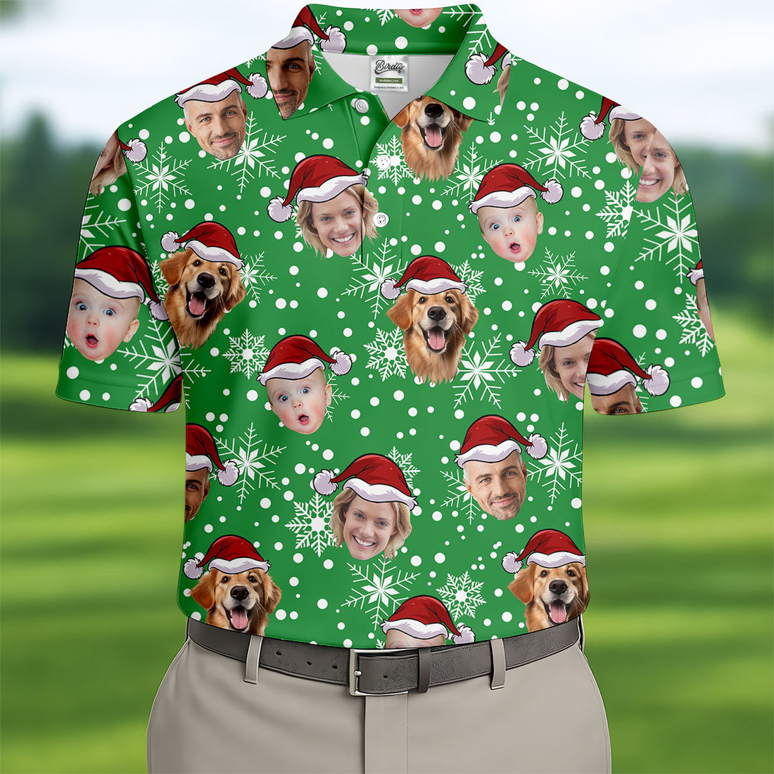 Custom Face Light Green Christmas Golf Tops For Men, Polo Shirts For Men, Christmas Golf Gift