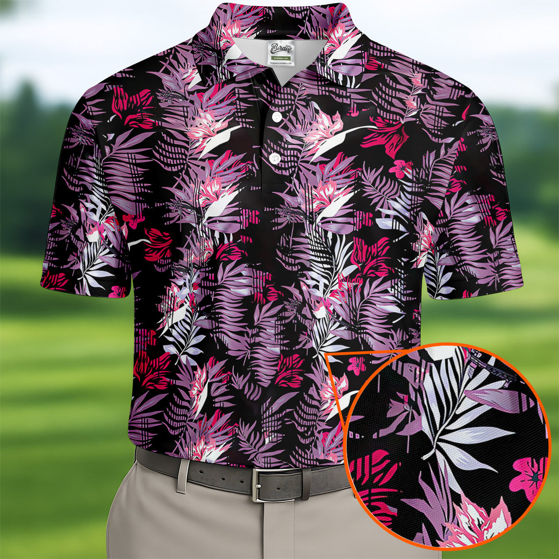 Purple And Black Tropical Golf Shirts, Golf Tops For Men, Polo Shirts For Men, Golfing Apparel