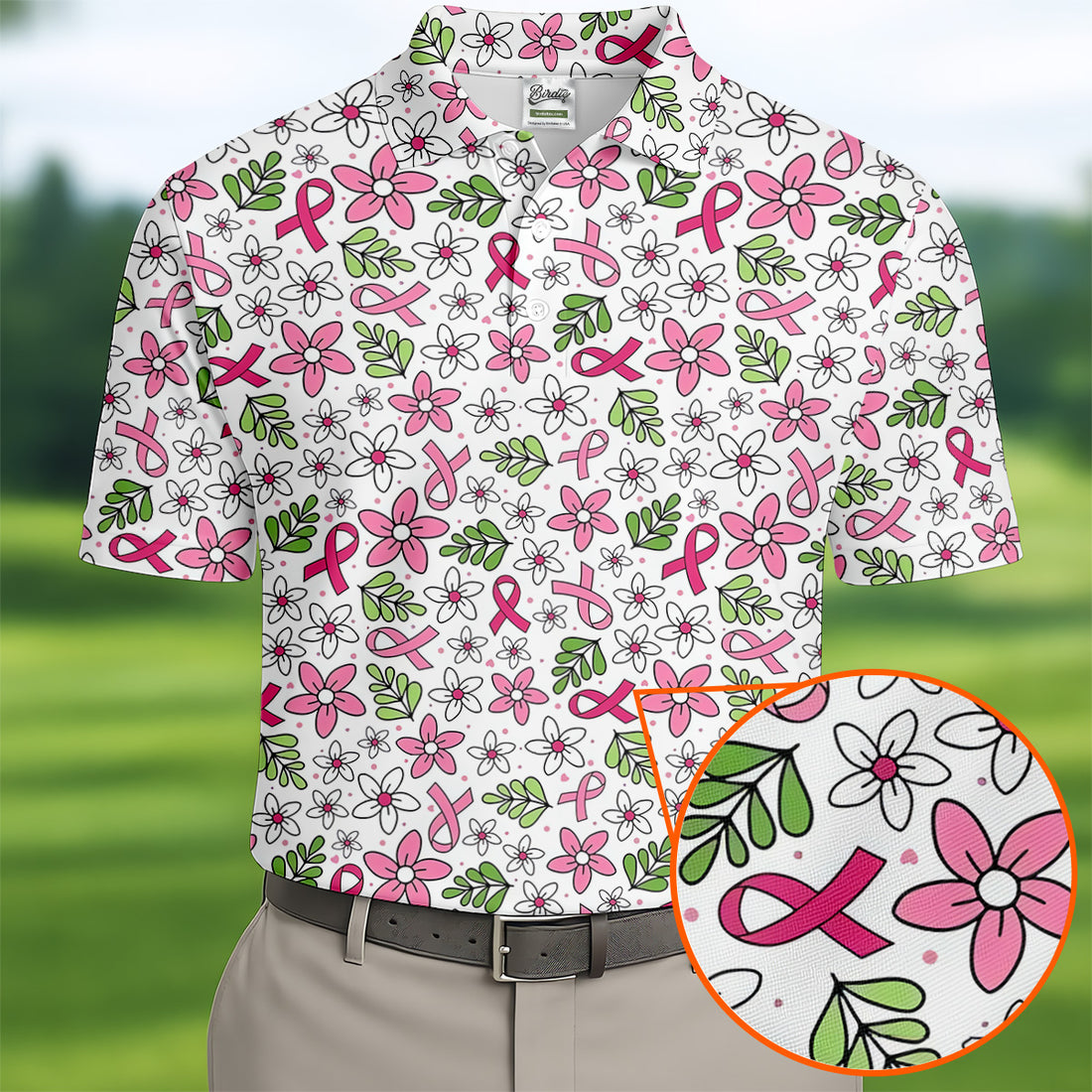 Breast Cancer Pink Ribbon Floral Golf Shirt, Cancer Awareness Shirt, Polo Shirts For Men, Golfing Apparel