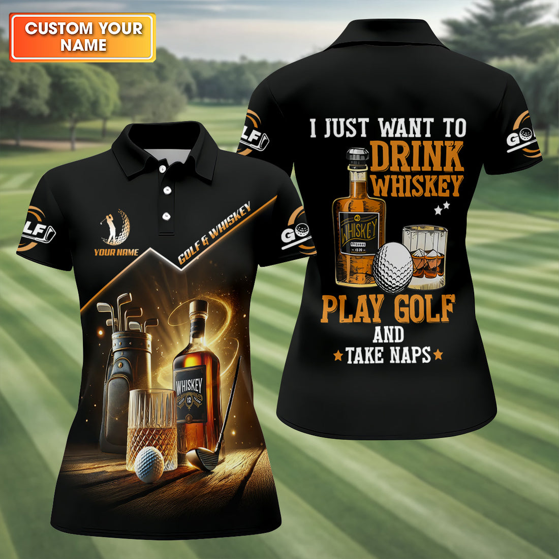 I Just Want To Drink Whiskey Play Golf And Take Naps Fun Womens Golf Shirts, Ladies Golf Shirts