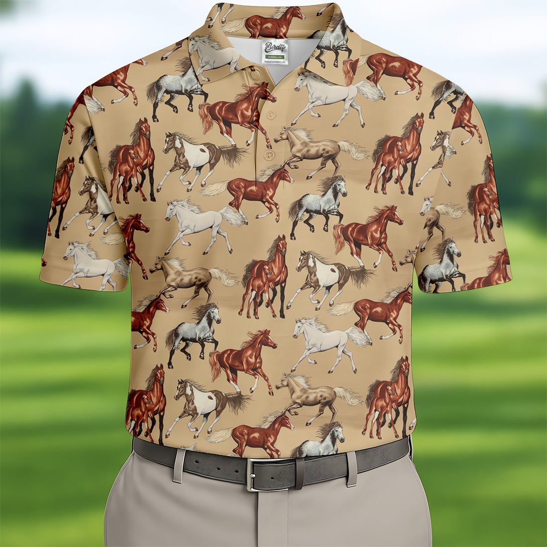 Wild Horse Seamless Pattern Golf Tops For Men, Hawaiian Golf Shirts, Long Sleeve Polo