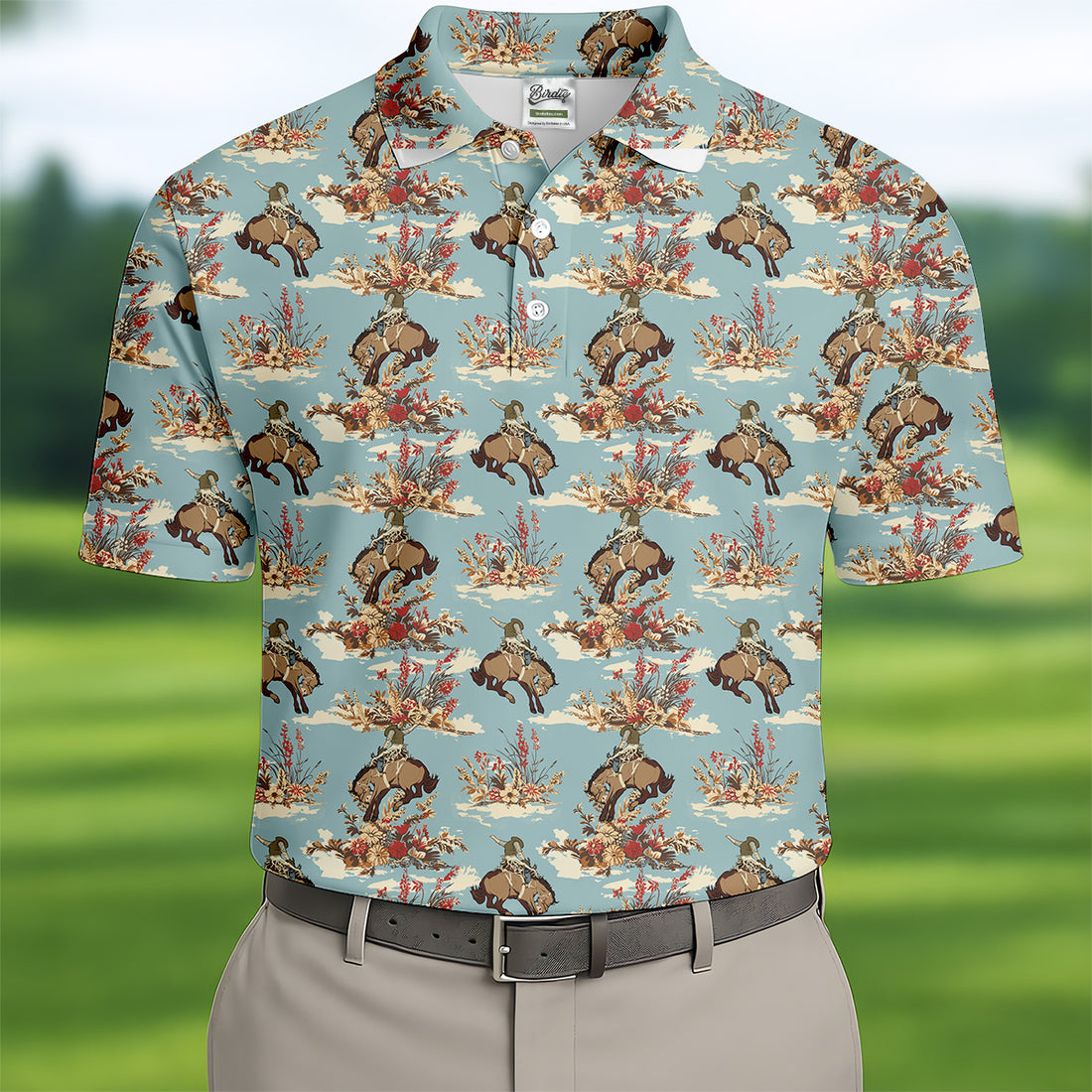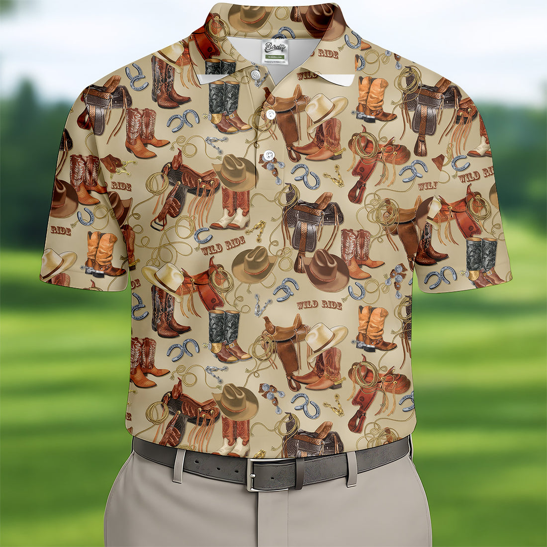 Wild Ride Western Ways Golf Shirt, Golf Tops For Men, Golf Polo Shirt, Golfing Apparel