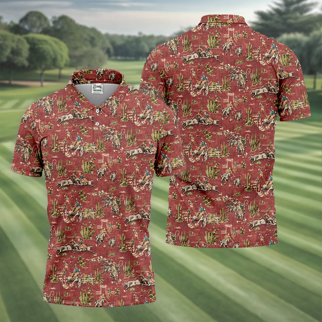 Cowboy Ride Horse Hawaiian Golf Polo, Golf Tops For Men, Golf Polo Shirt, Golfing Apparel
