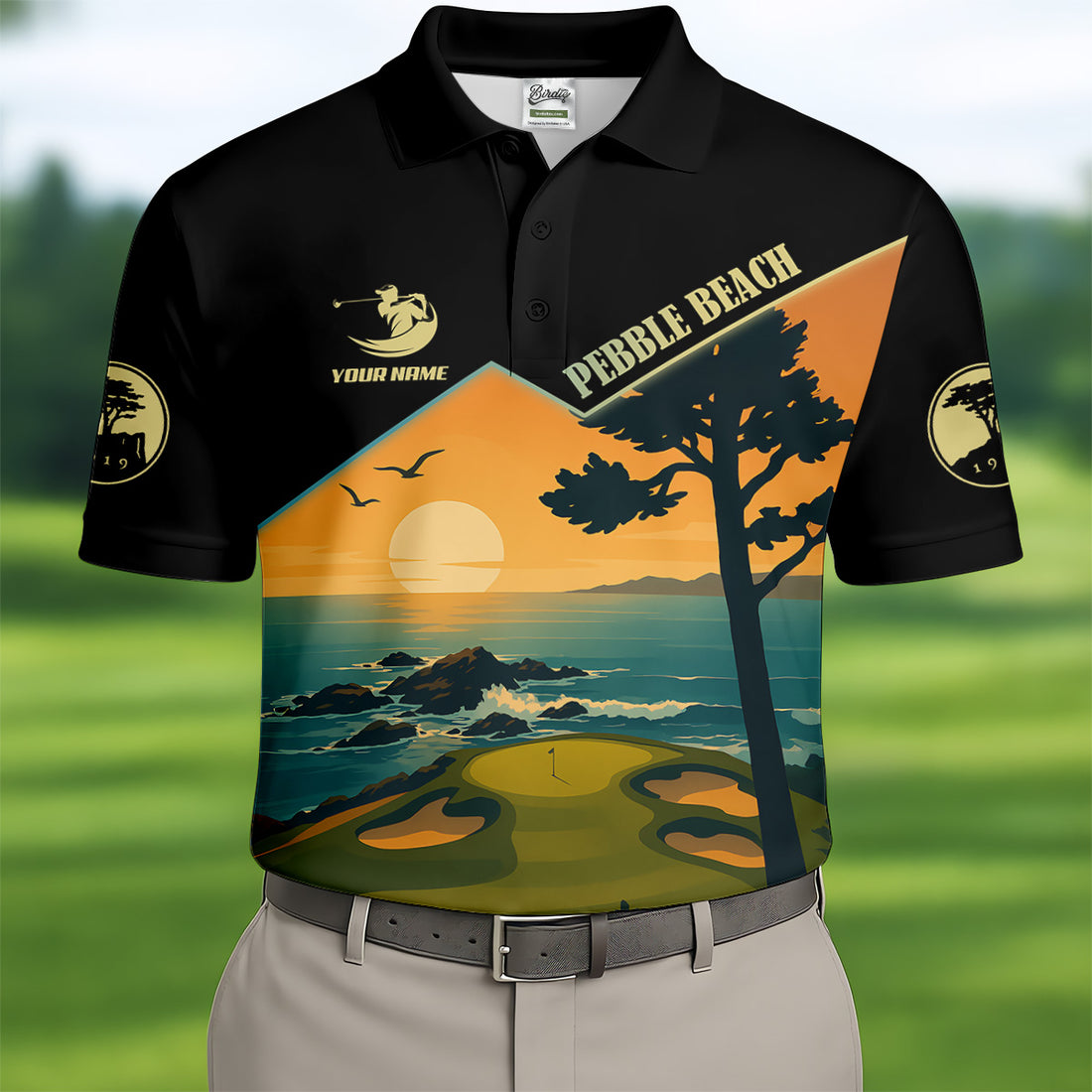 Pebble Beach Sunset Golf Tops For Men, Custom Golf Polos, Golf Polo Shirt, Golf Gift For Men