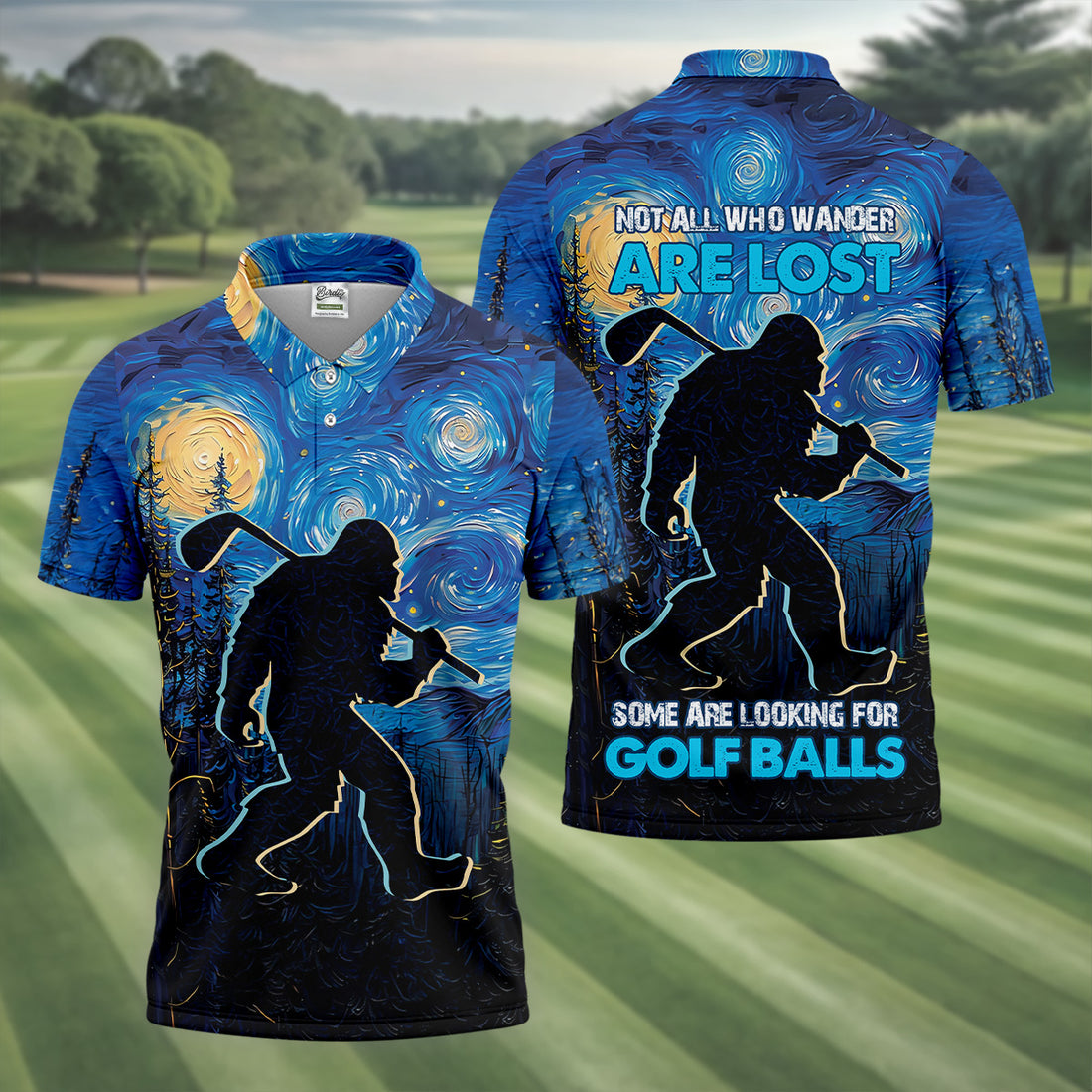 Not All Who Wander Are Lost Starry Night Shirt, Sasquatch Golf Shirt, Golf Tops For Men, Golf Gift For Men