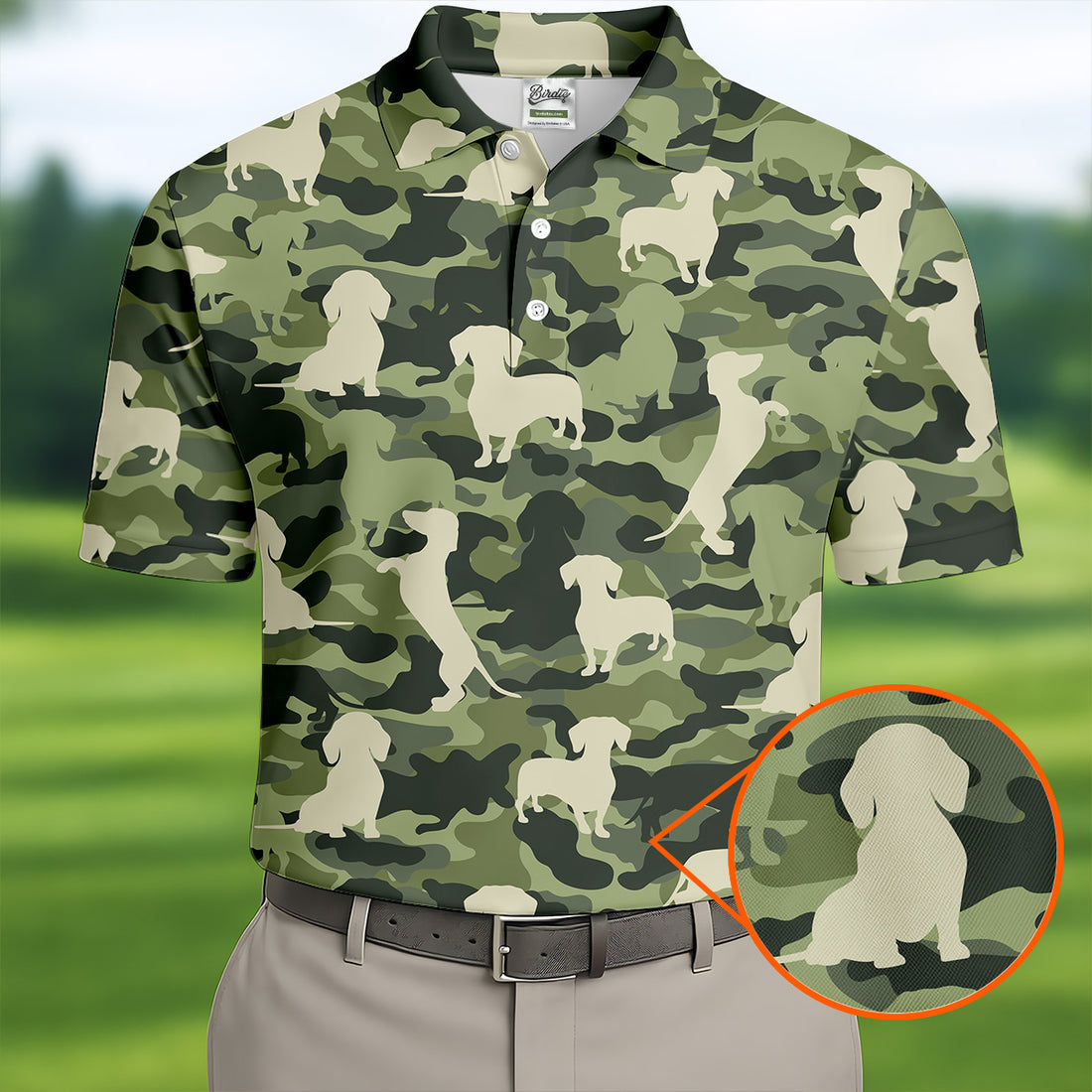 Funny Dachchunds Camo Men's Golf Shirt, Dog Golf Shirt, Funny Golf Shirt, Men Golf Gift