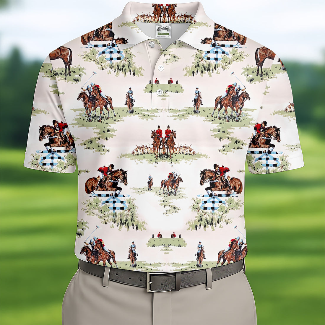 Equestrian Theme Mens Golf Polo Shirts, Unique Gift For Golfer, Golf Accessories For Men
