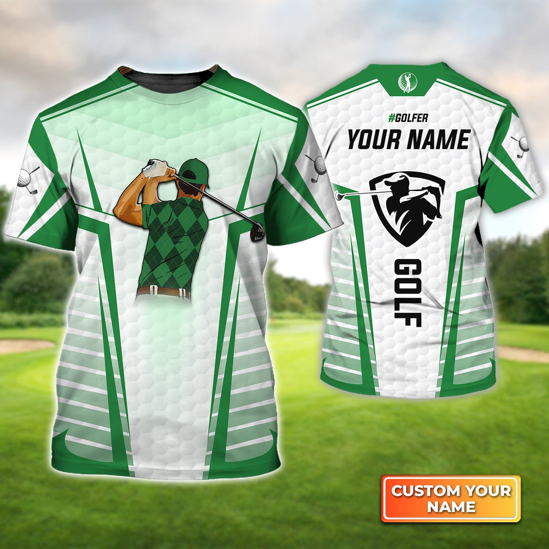 Golf Swing Green Abstract With Golf Club - Personalized Name 3D Tshirt