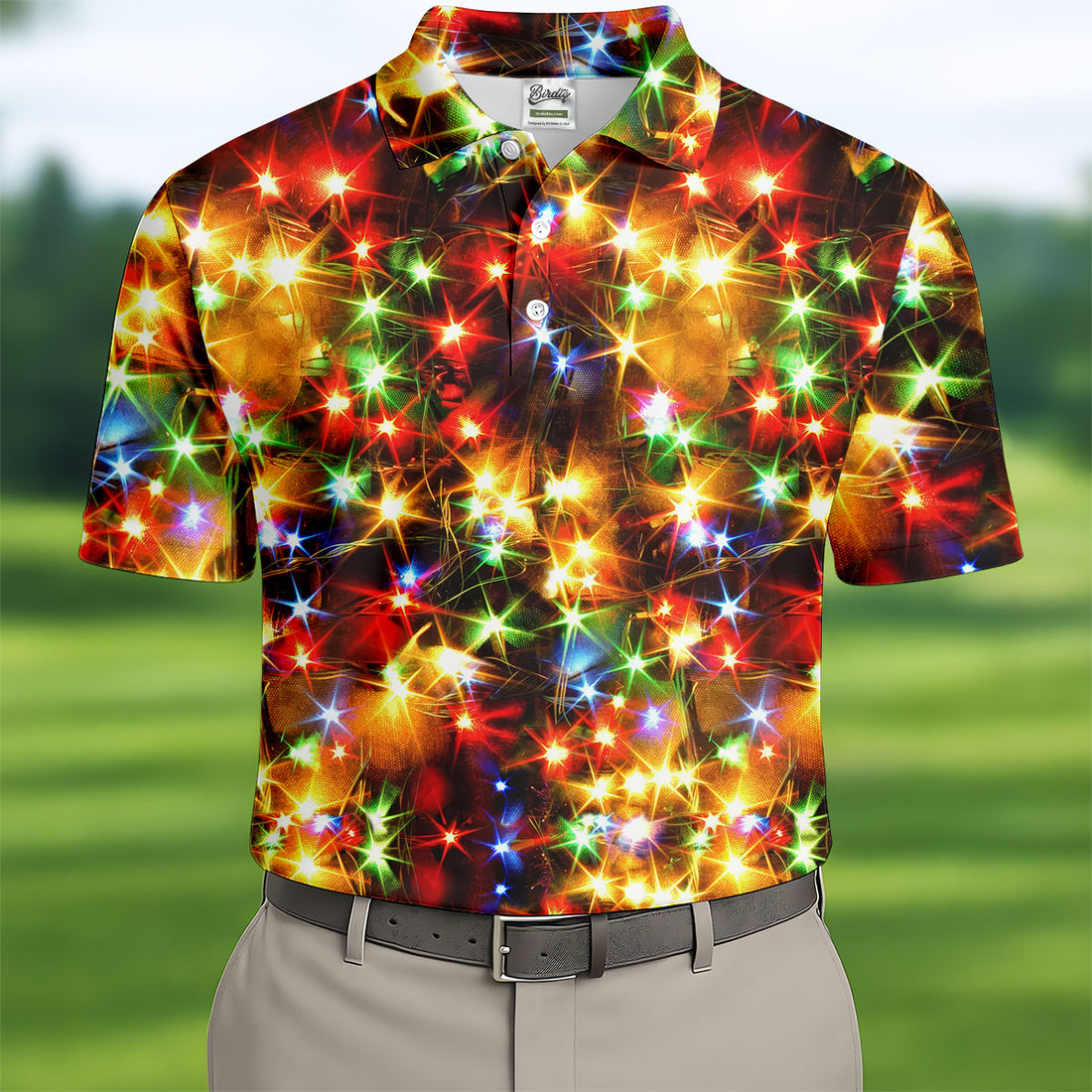Colorful Christmas Lights Men's Golf Polo Shirts, Christmas Golf Shirt, Golf Gift For Men, Polo Shirts For Men
