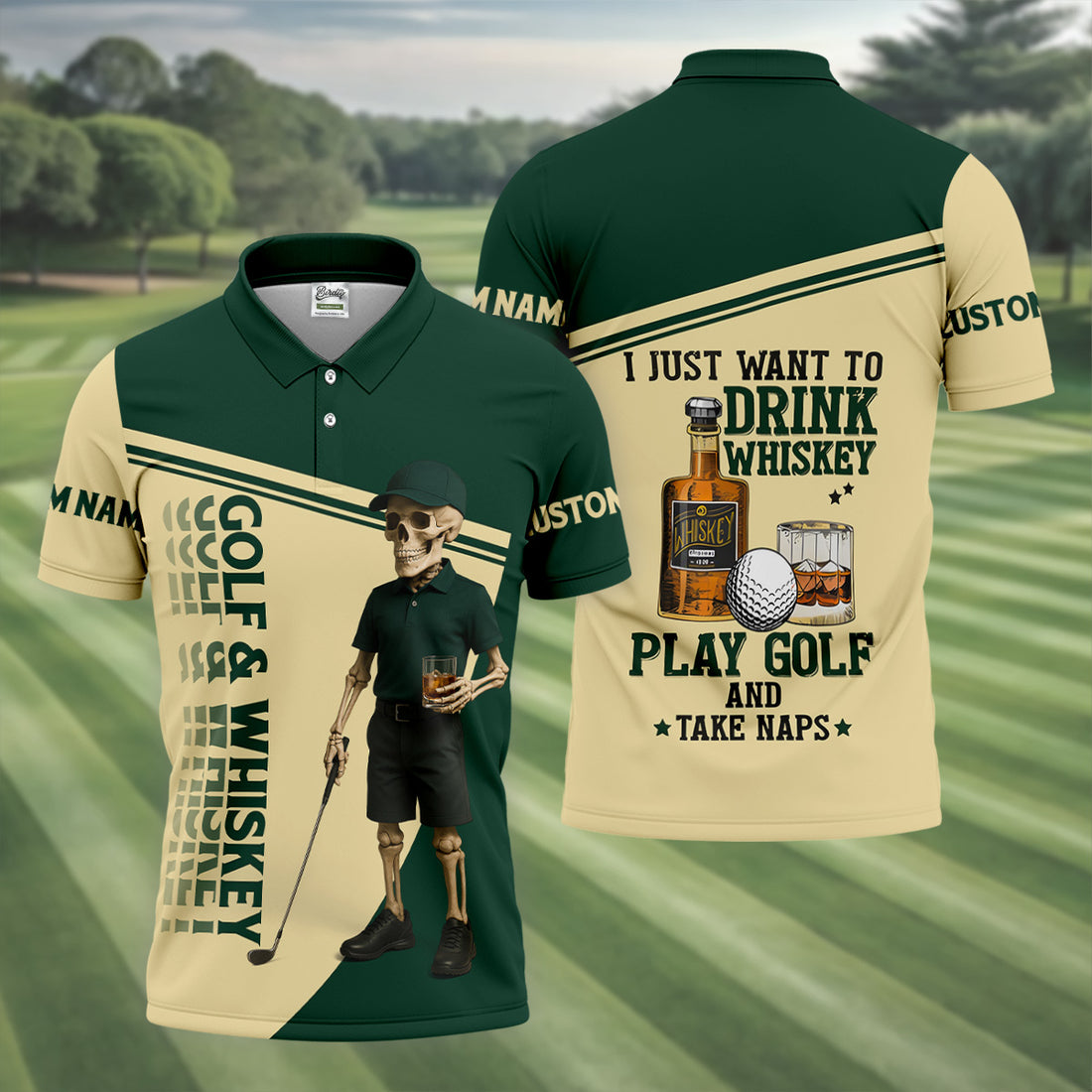 Golf And Whiskey Funny Skeleton Golf Tops For Men, Fun Golf Shirts For Men, Golfing Apparel