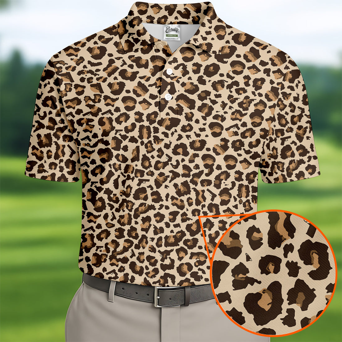 Brown Leopard Golf Tops For Men, Golf Gift For Men, Golf Shirts For Men, Golfing Apparel