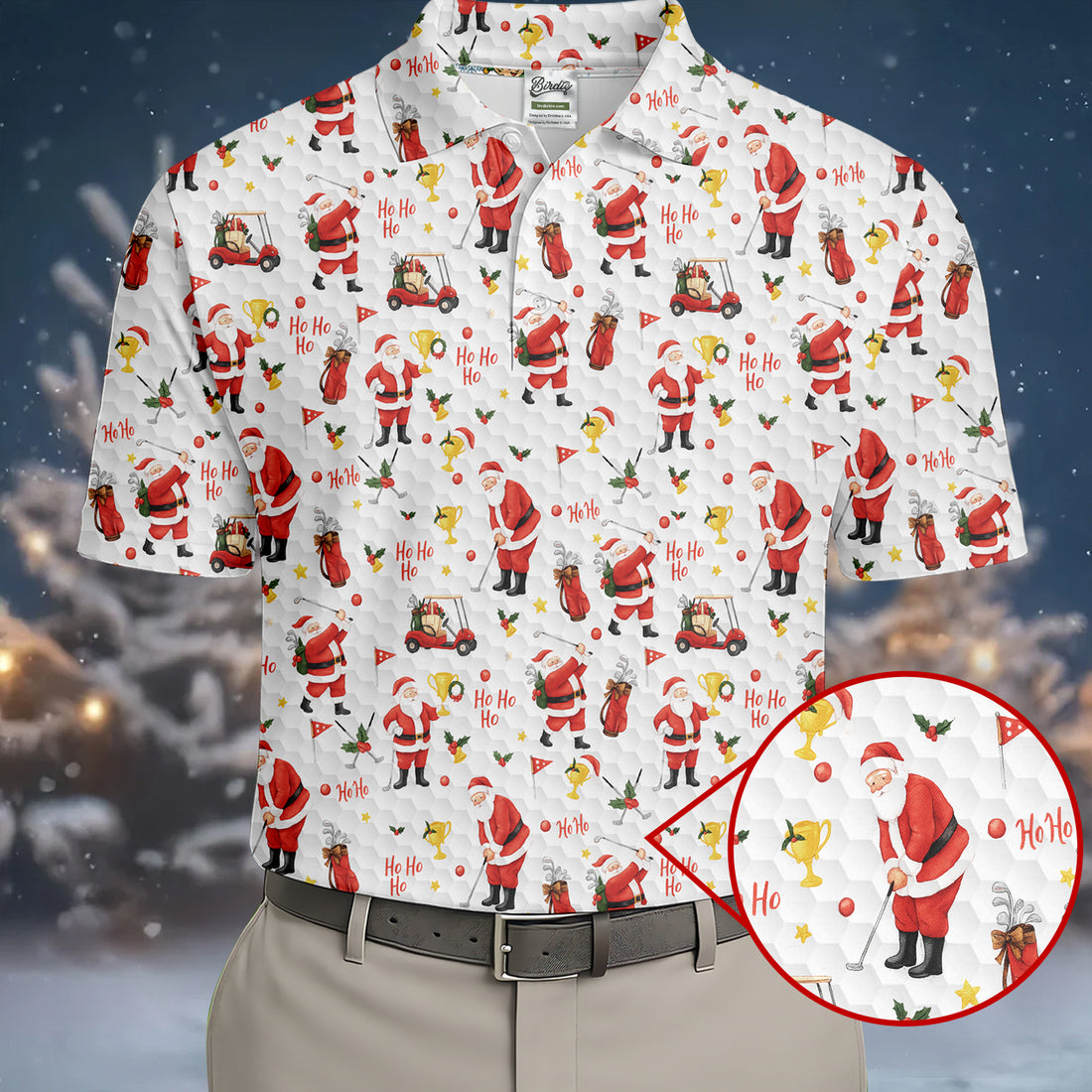 Ho Ho Ho Santa Golf Tops For Men, Christmas Golf Shirt, Fun Golf Shirts For Men, Polo Shirts For Men