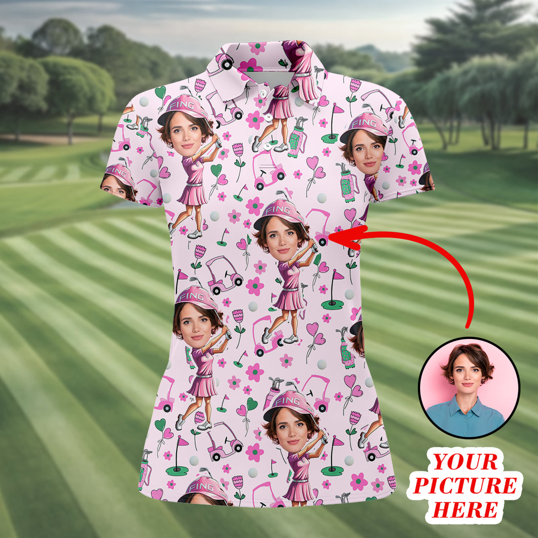 Custom Face Funny Womens Golf Polo Shirt, Ladies Golf Shirt