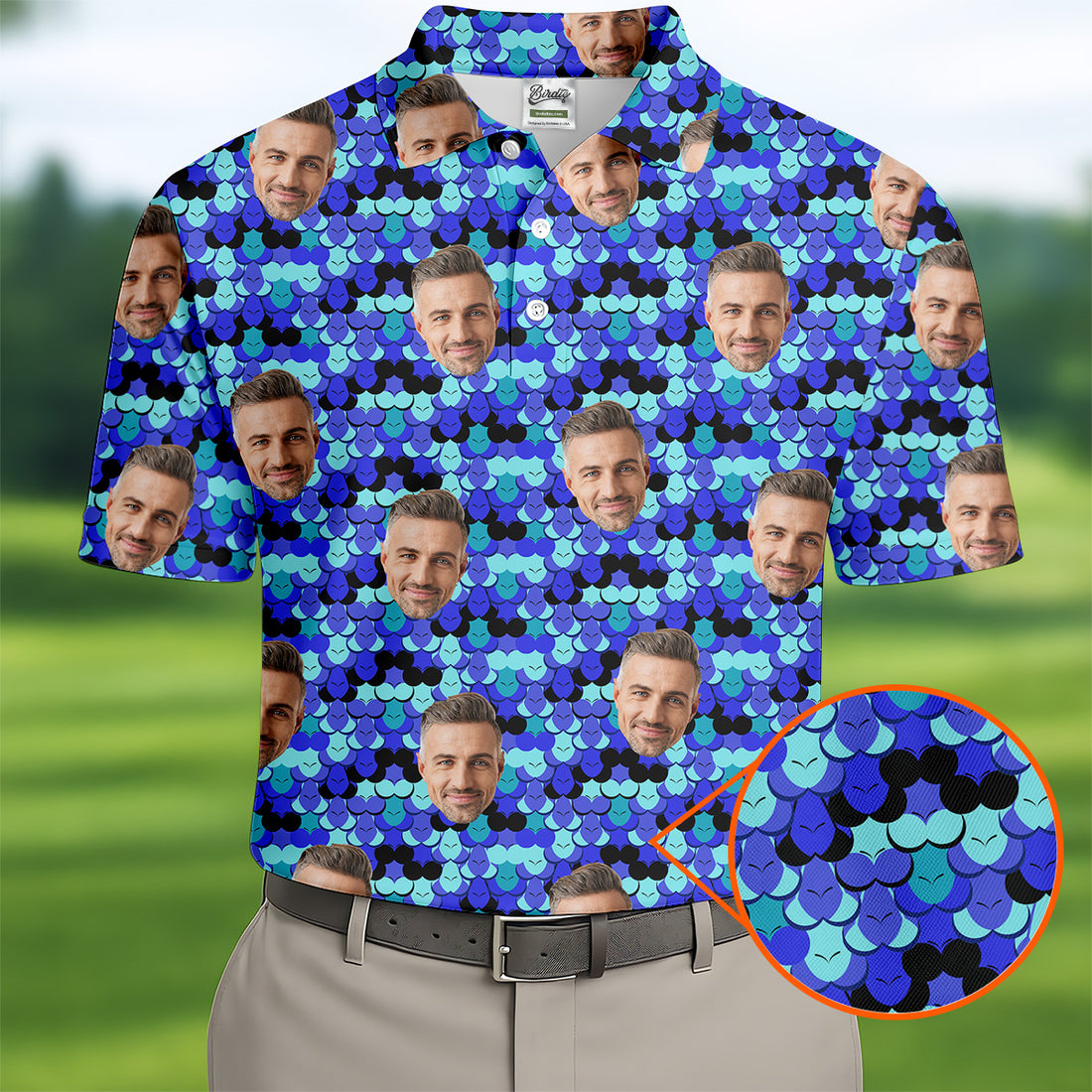 Custom Face Blue Fun Golf Shirts For Men, Fun Men's Golf Polos, Cool Golf Gift, Golfing Apparel