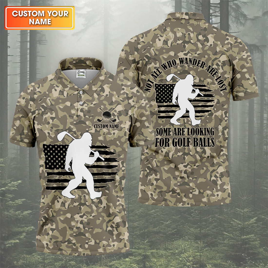 Not All Who Wander Are Lost Bigfoot Patriotic Golf Shirt, Camo Polo Shirt, Golf Tops For Men, Custom Golf Polos