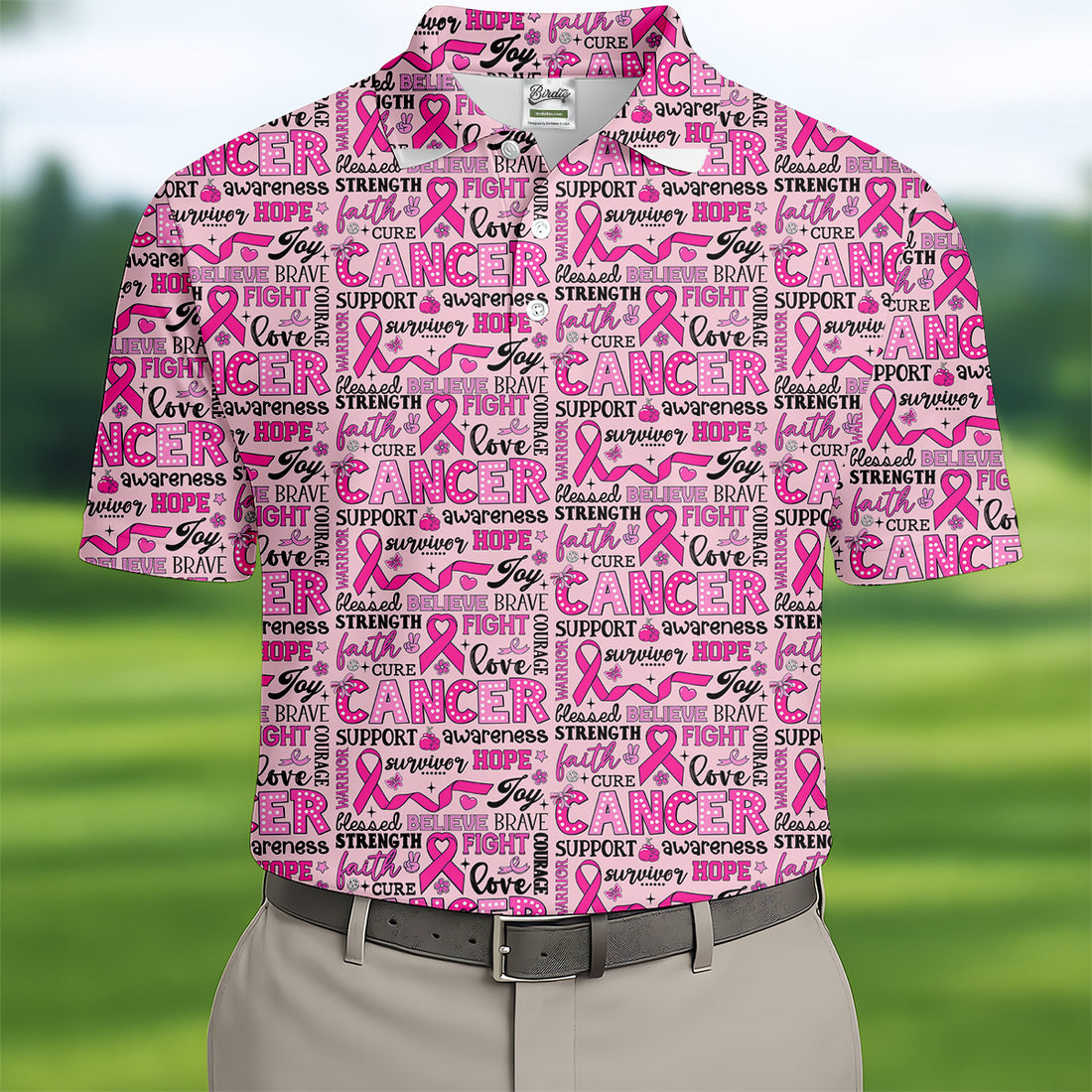Fcancer Men's Golf Shirt, Breast Cancer Awareness Shirt, Pink Golf Shirt, Golf Shirts For Men