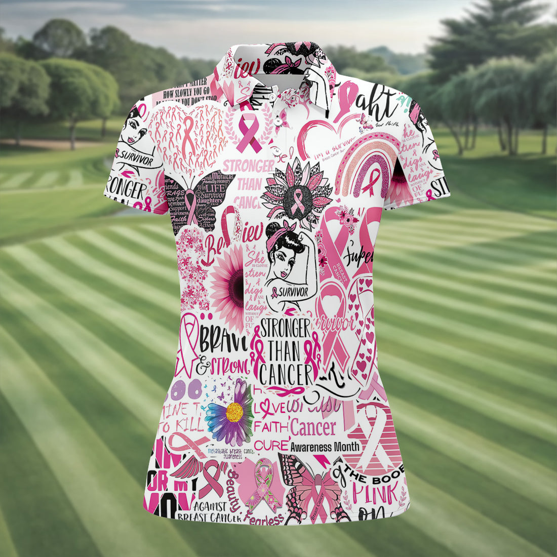 Breast Cancer Golf Shirt, Pink Cancer Awareness Shirt, Breast Cancer Golf Apparel, Ladies Golf Shirts