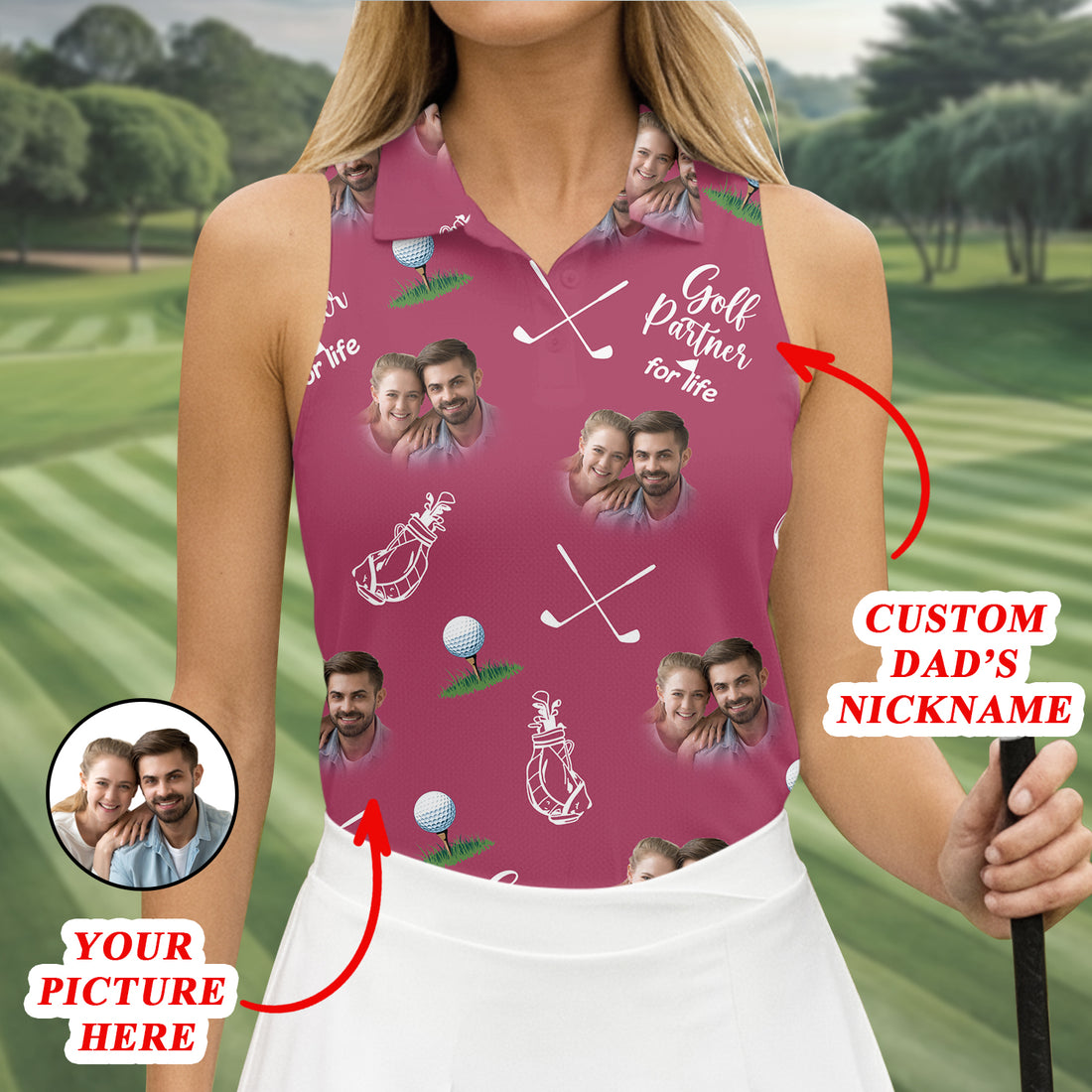 Golf Partner For Life Custom Photo Pink Purple Women Golf Top, Valentines Golf Gift, Ladies Golf Polos