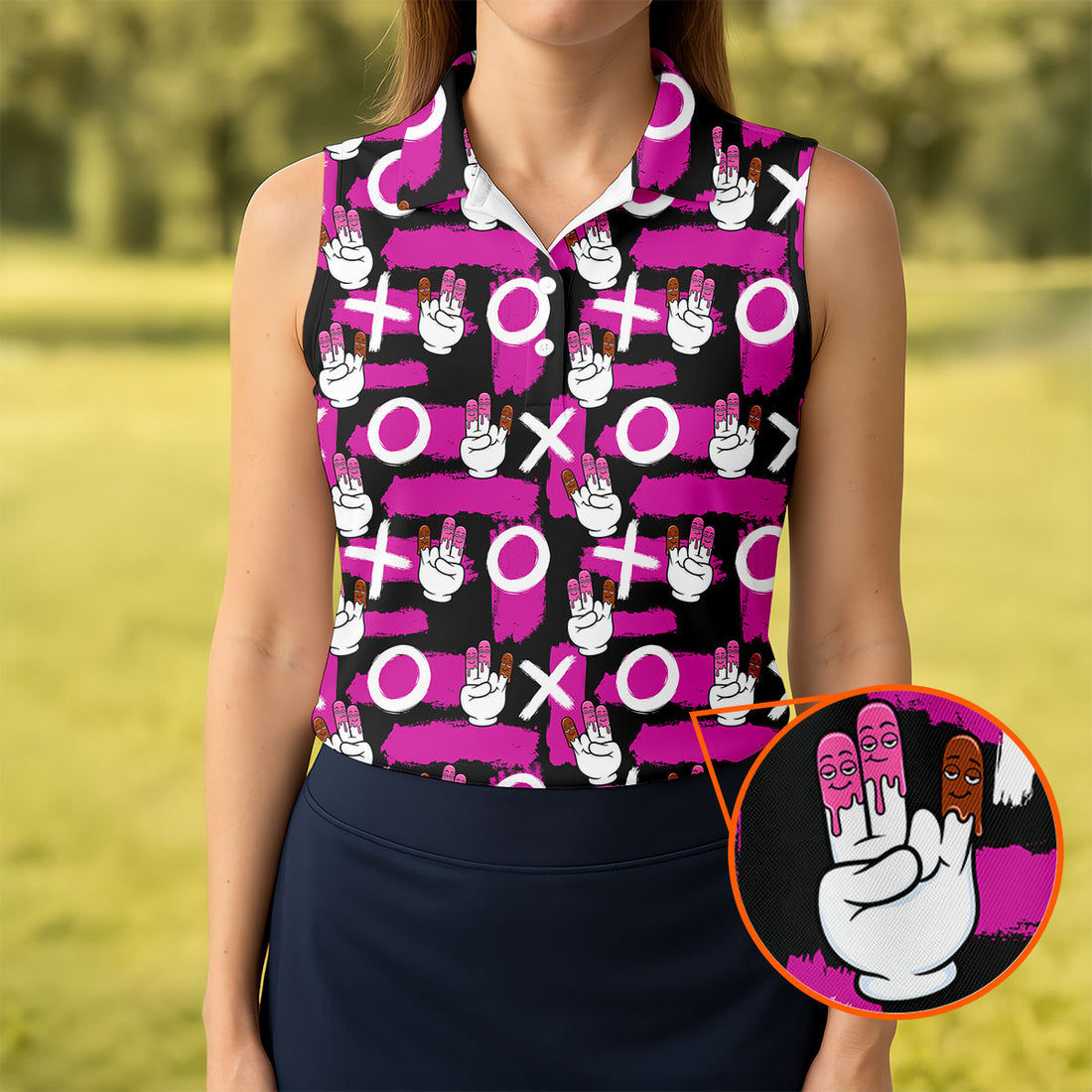 Chocolate Fingers Adult Humor XOXO Black Purple Fun Women's Golf Shirts, Valentines Golf Gift, Women's Golf Tops