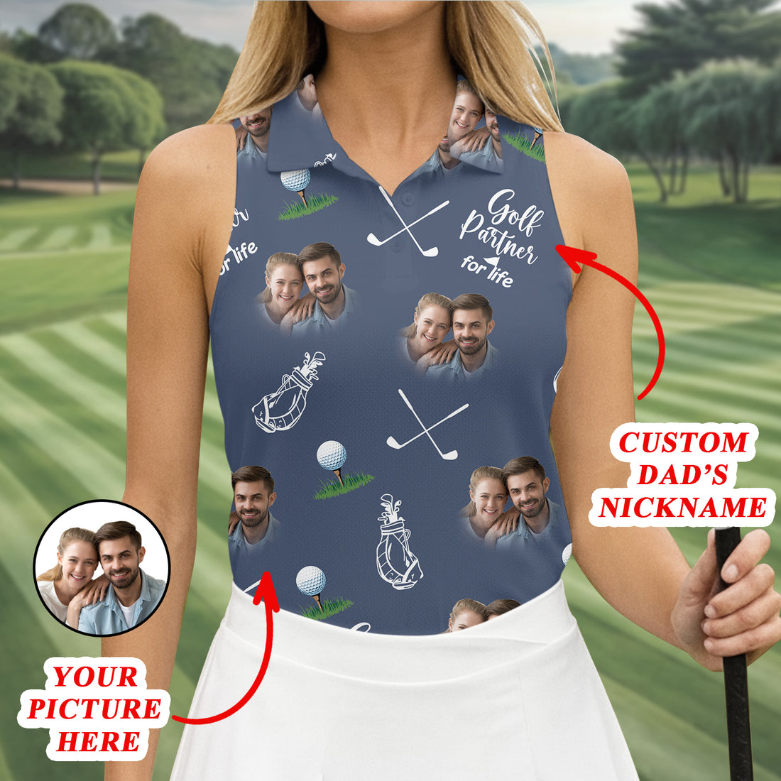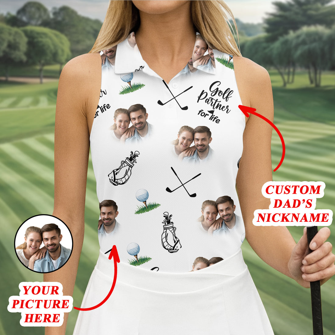 Golf Partner For Life Custom Photo White Women Golf Top, Valentines Golf Gift, Ladies Golf Polos