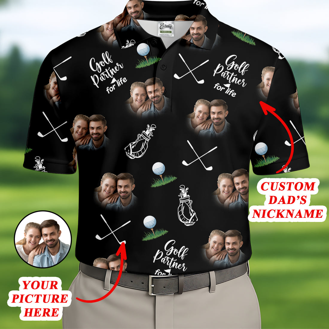 Golf Partner For Life Custom Photo Black Golf Tops For Men, Valentines Golf Gift, Golf Gift For Men