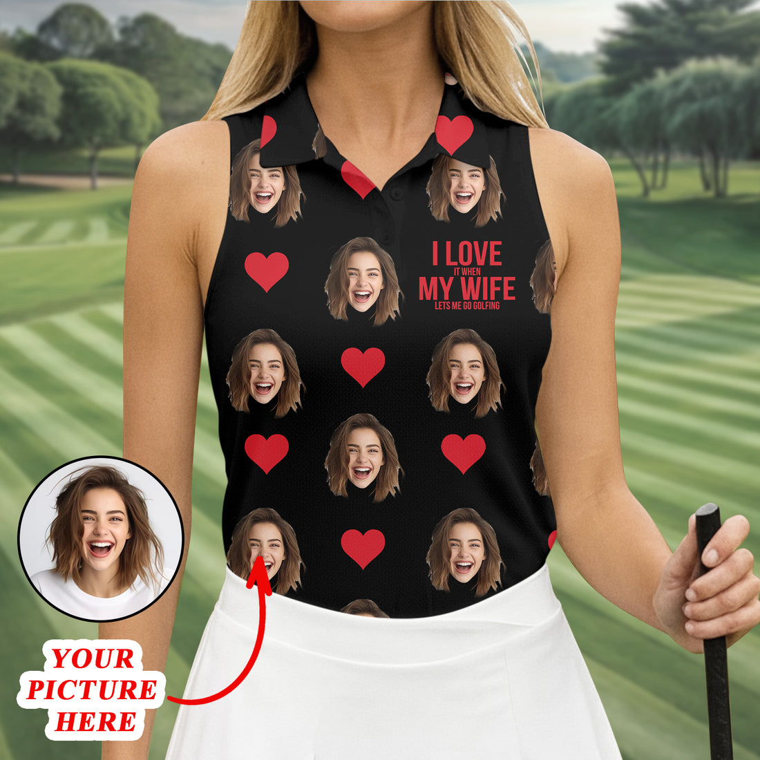 I Love My Wife Custom Photo Black Golf Shirt, Valentines Golf Gift, Women Golf Top, Ladies Golf Polos