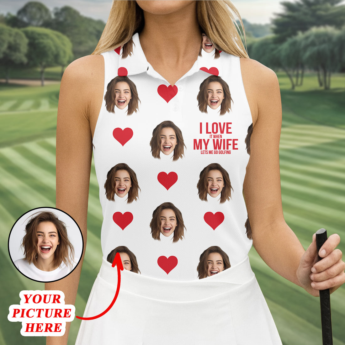 I Love My Wife Custom Photo White Golf Shirt, Valentines Golf Gift, Women Golf Top, Ladies Golf Polos
