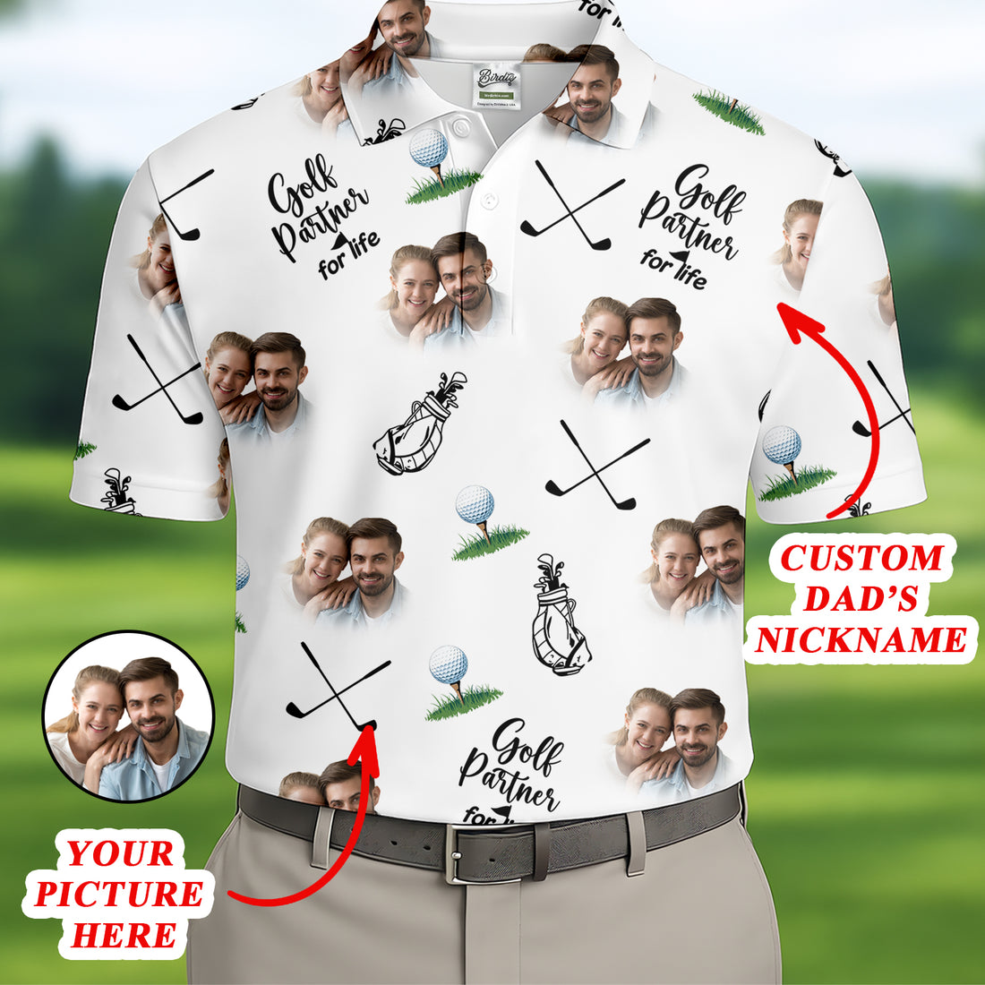 Golf Partner For Life Custom Photo White Golf Tops For Men, Valentines Golf Gift, Golf Gift For Men