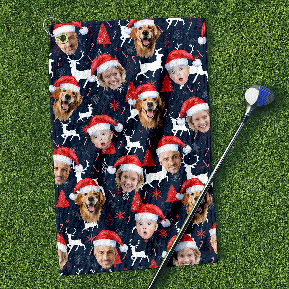 Custom Face Snow Pine Tree Red Golf Towels, Christmas Golf Gift, Custom Golf Accessories