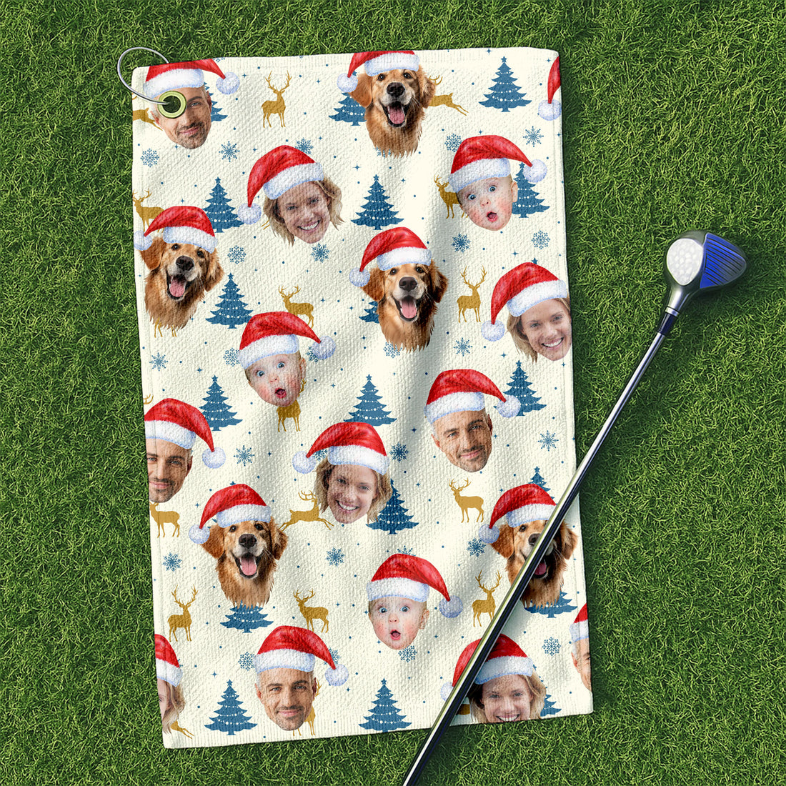 Custom Face Pine Tree Pattern Beige And Navy Golf Towels, Christmas Golf Gift, Custom Golf Accessories