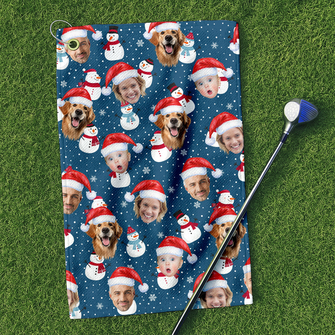 Custom Face Xmas Snowman Navy Golf Towels, Christmas Golf Gift, Custom Golf Accessories