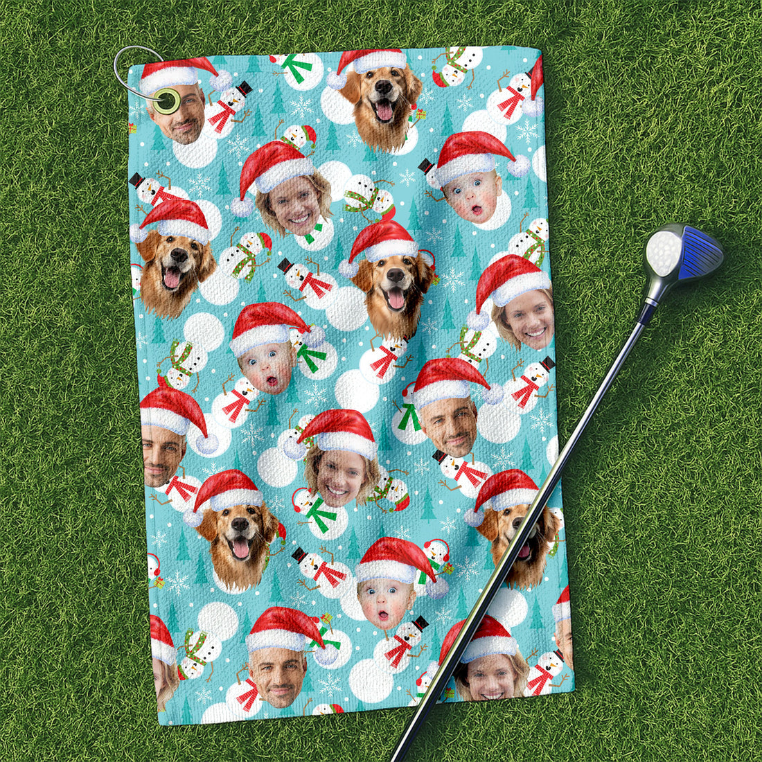 Custom Face Cute Snowman Ice Blue Golf Towels, Christmas Golf Gift, Custom Golf Accessories