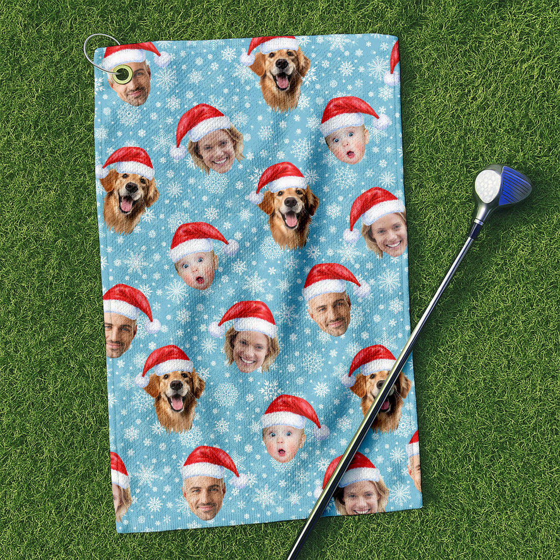 Custom Face Snowflakes Print Ice Blue Cute Golf Towels, Christmas Golf Gift, Custom Golf Accessories
