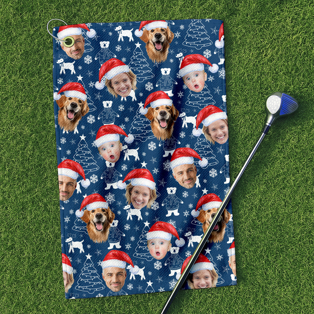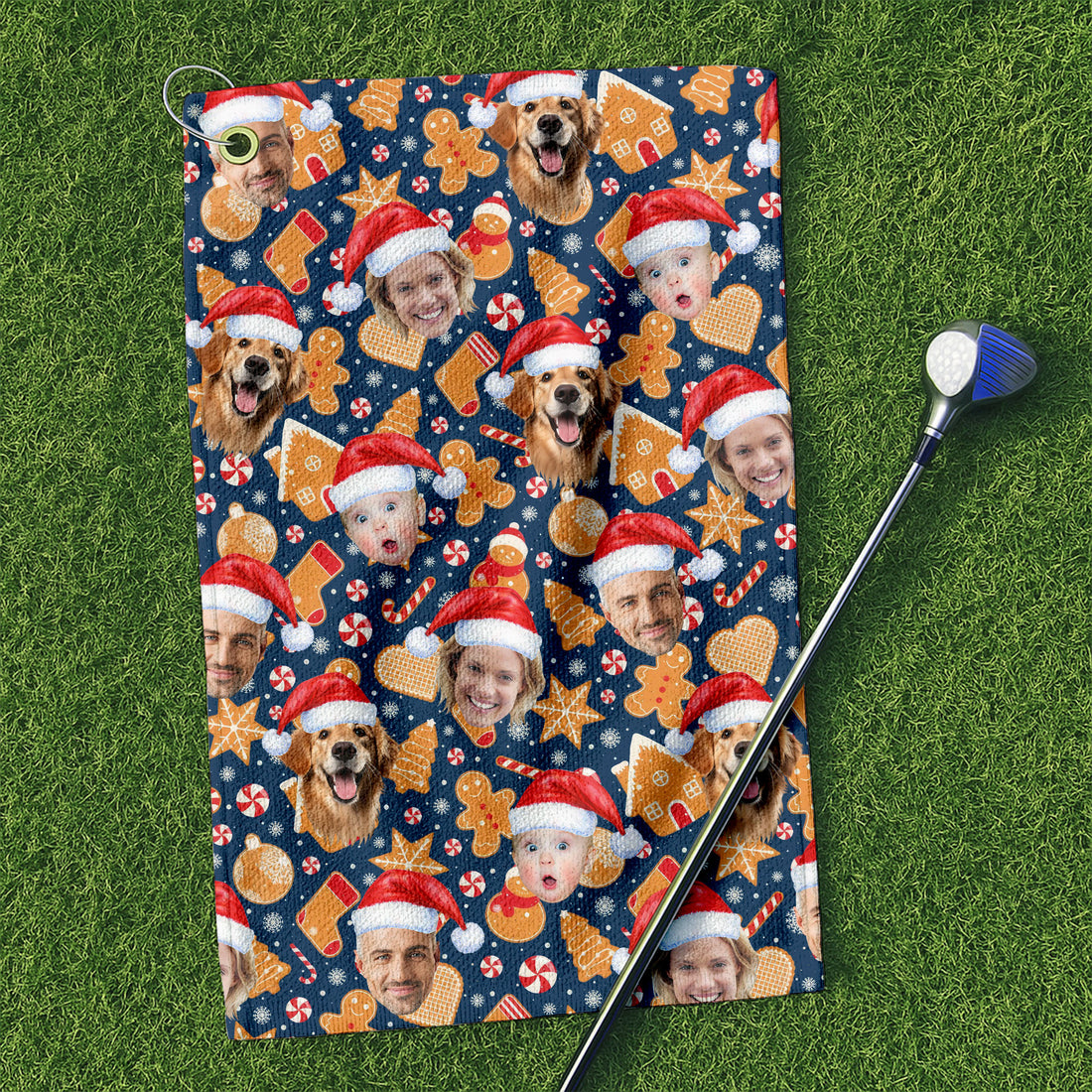 Custom Face Christmas Sweets Navy Golf Towel, Christmas Golf Gift, Golf Gift Idea