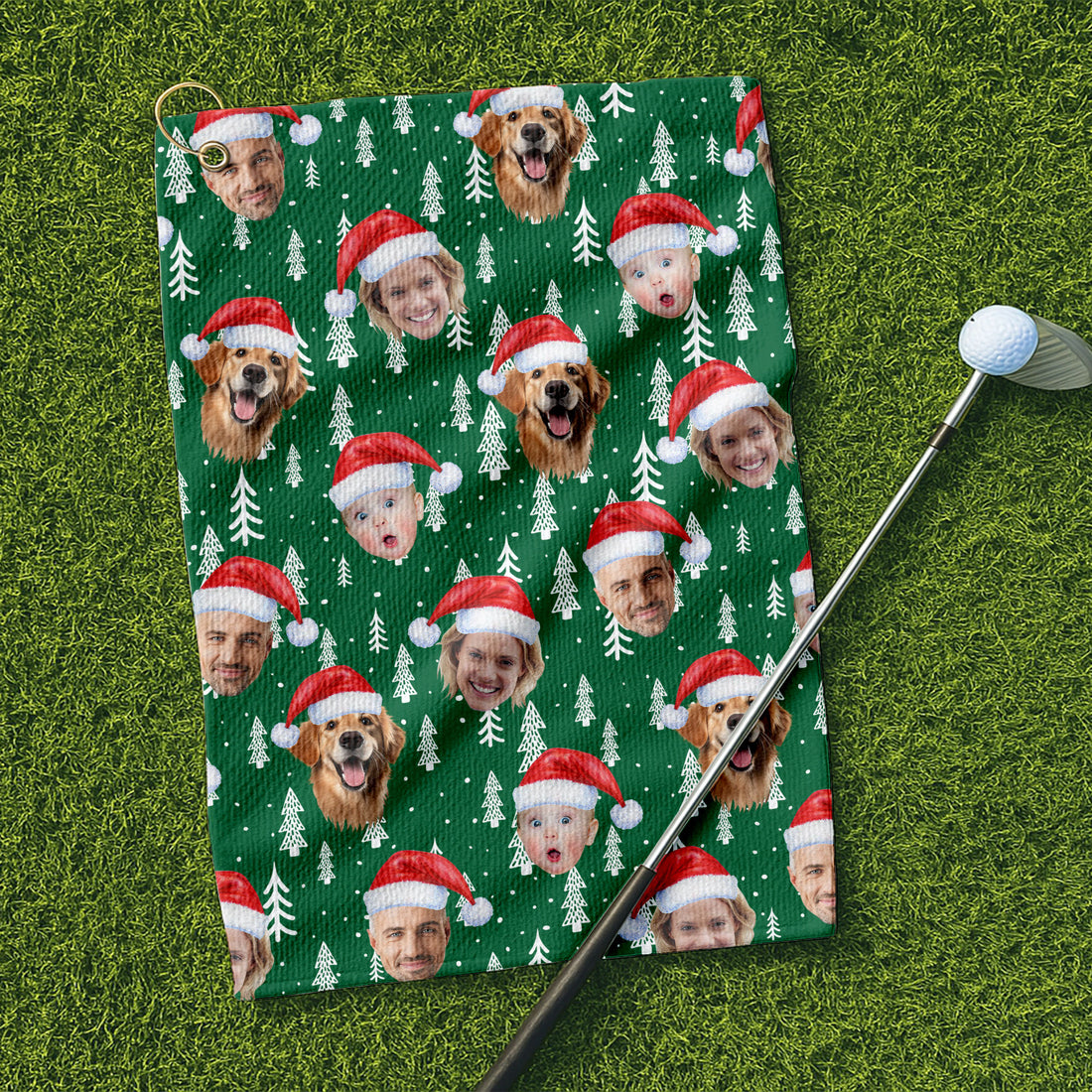 Custom Face Snow Pine Tree Green Golf Towel, Christmas Golf Gift, Golf Gift Idea