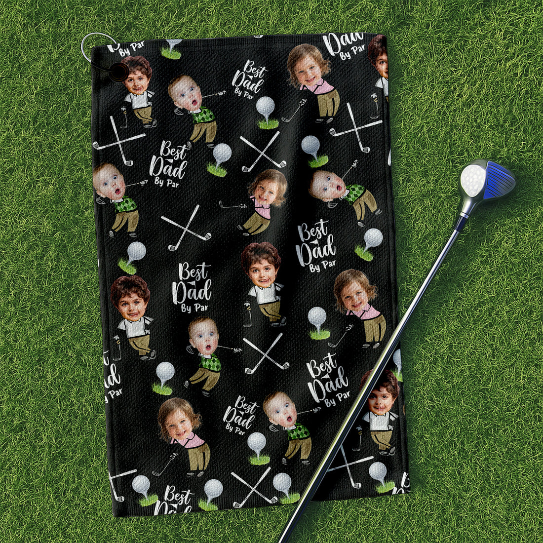 Custom Golf Towel With Kids Photo, Best Dad By Par Personalised Golf Towel, Gifts For The Golfing Dad