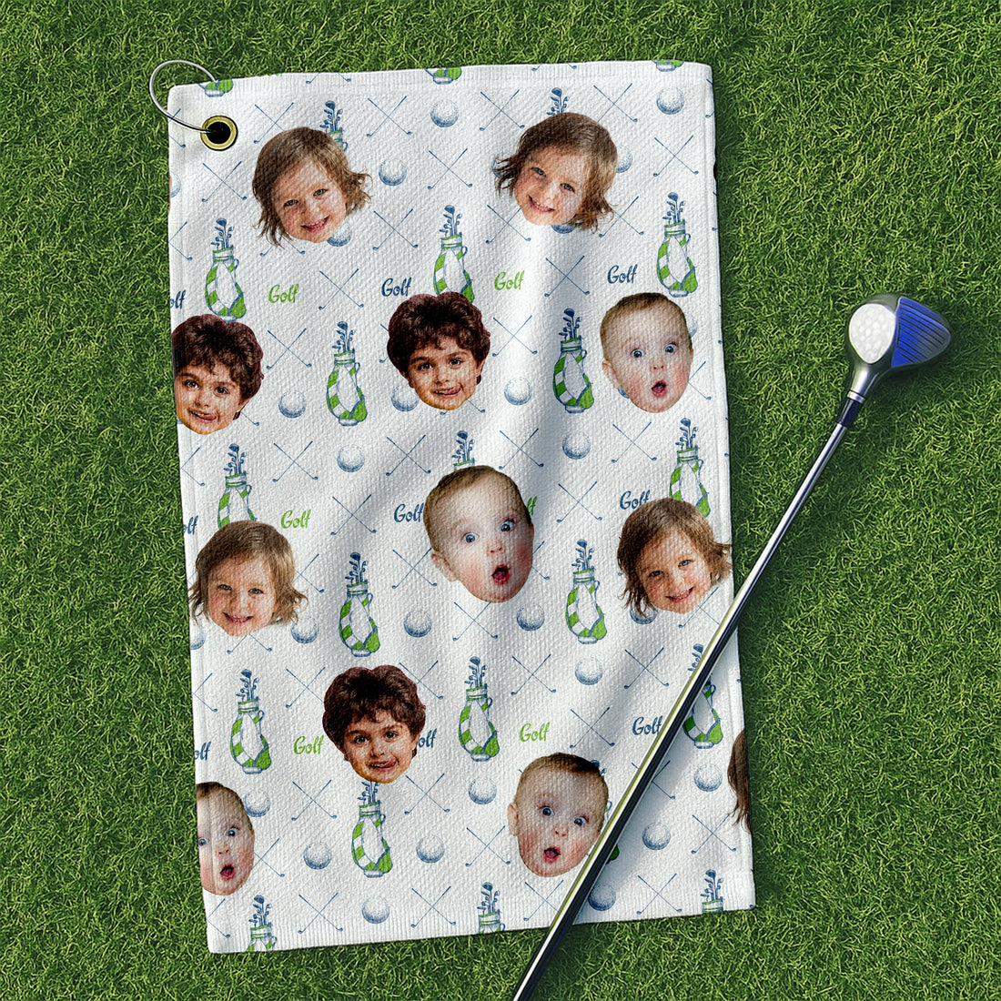 Custom Golf Towel With Kids Photo, Custom Face Gift, Cool Golf Towel, Christmas Golf Gift