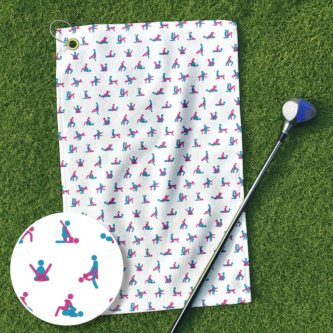 Blue And Pink Naughty Stick People White Golf Towel, Unique Gift For Golfer, Golf Accessories