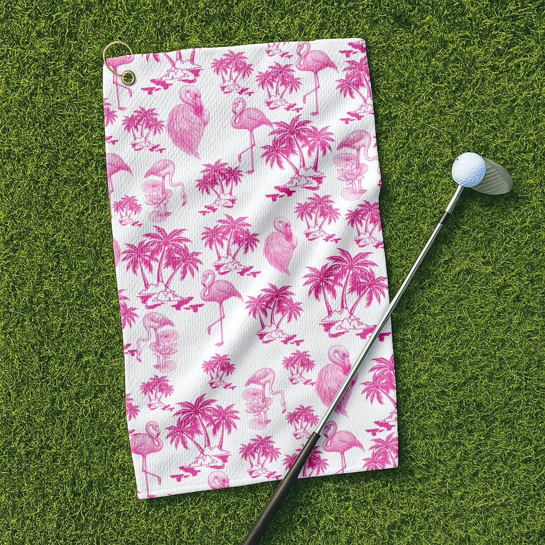 Funny Pink Flamingo Coconut Golf Towel, Golf Rag, Unique Gift Ideas For Men, Christmas Golf Gift