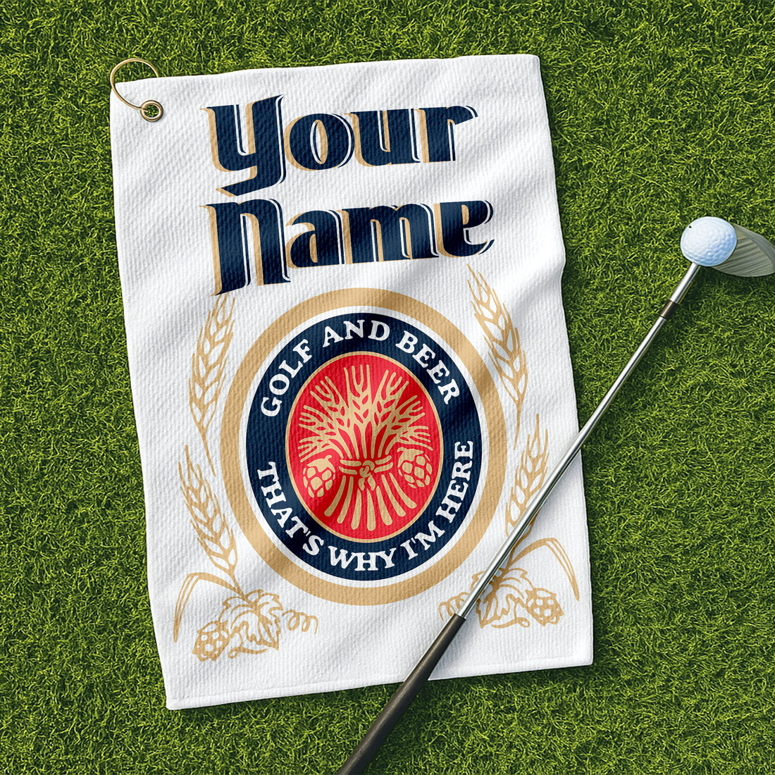 Golf And Beer That's Why I'm Here Golf Towel, Funny Golf Towel, Dad Golf Gift, Christmas Golf Gift