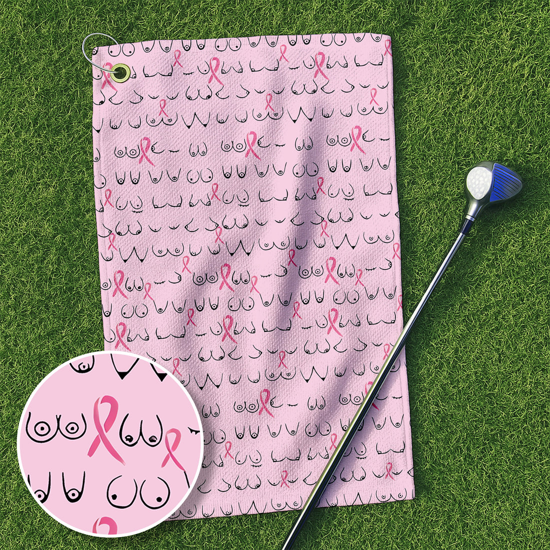 Pink Golf Towel With Ribbon Pattern, Unique Gift For Golfer, Christmas Golf Gift, Golf Accessories