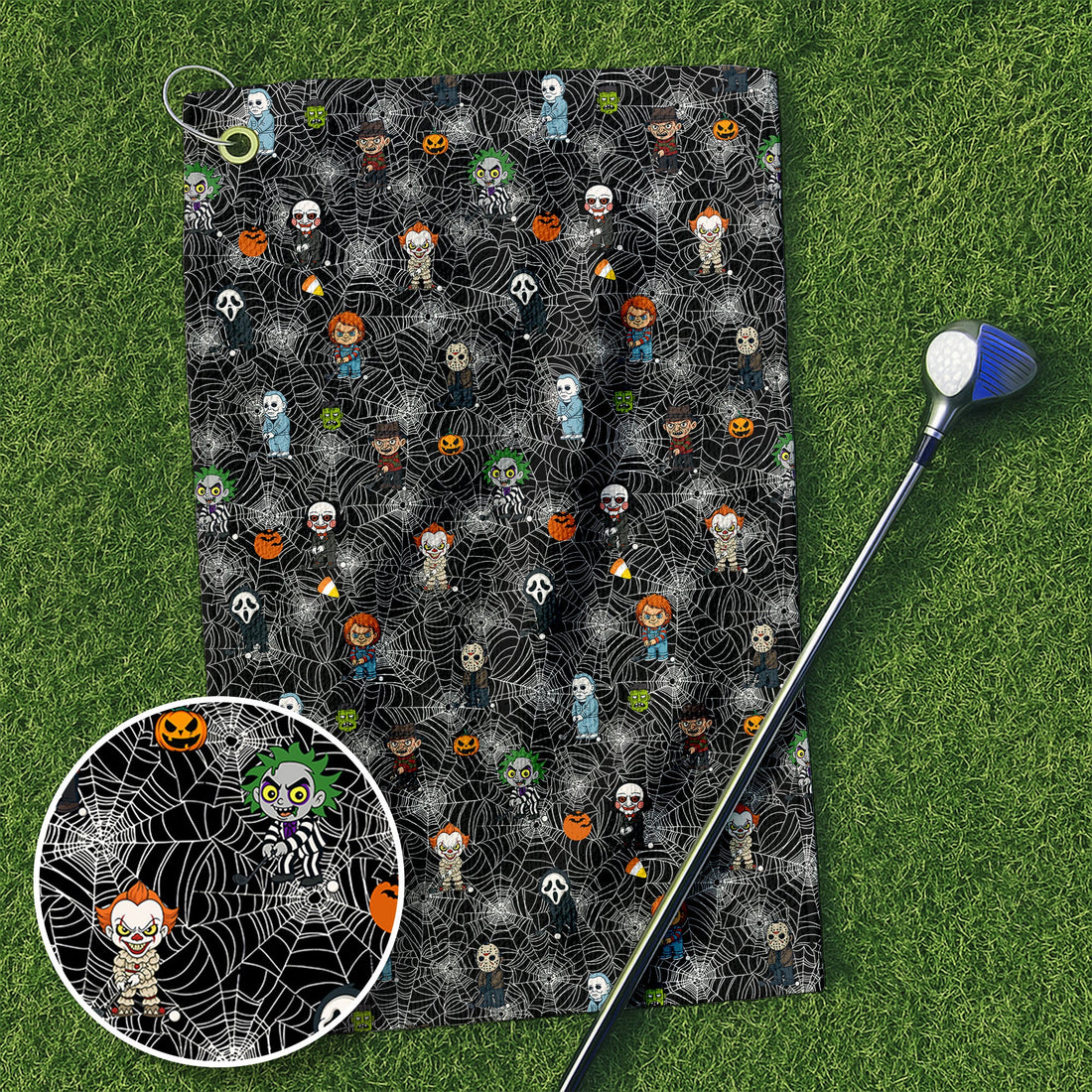 Horror Movie Characters Black Golf Towel, Unique Gift For Golfer, Christmas Golf Gift, Golf Accessories
