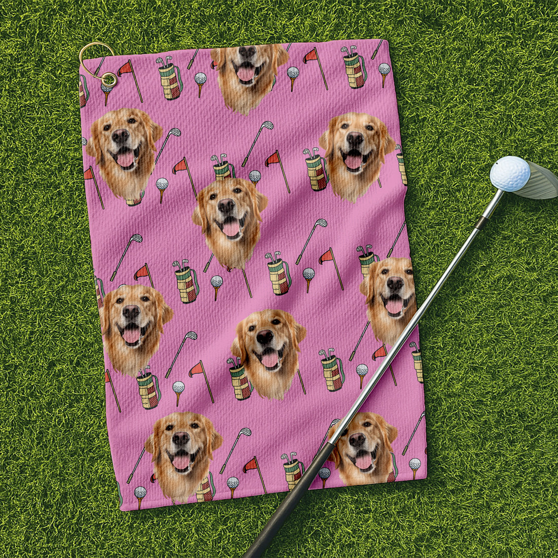 Pink Golf Towel With Custom Pet Portrait, Unique Gift For Golfer, Christmas Golf Gift, Golf Accessories