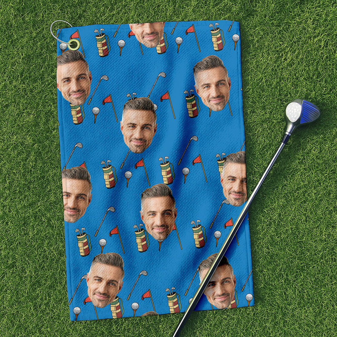 Blue Golf Towel With Custom Pet Portrait, Unique Gift For Golfer, Christmas Golf Gift, Golf Accessories