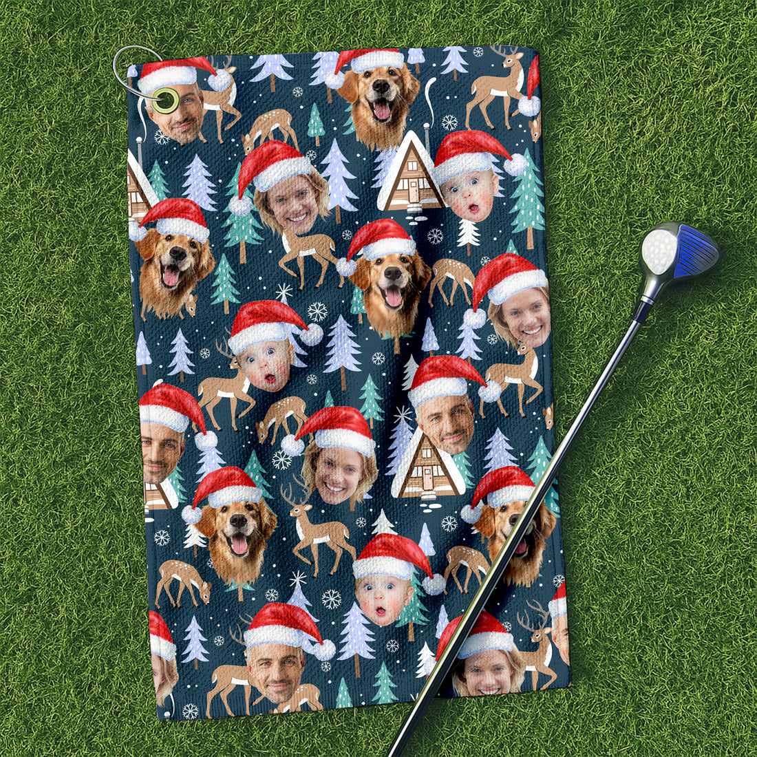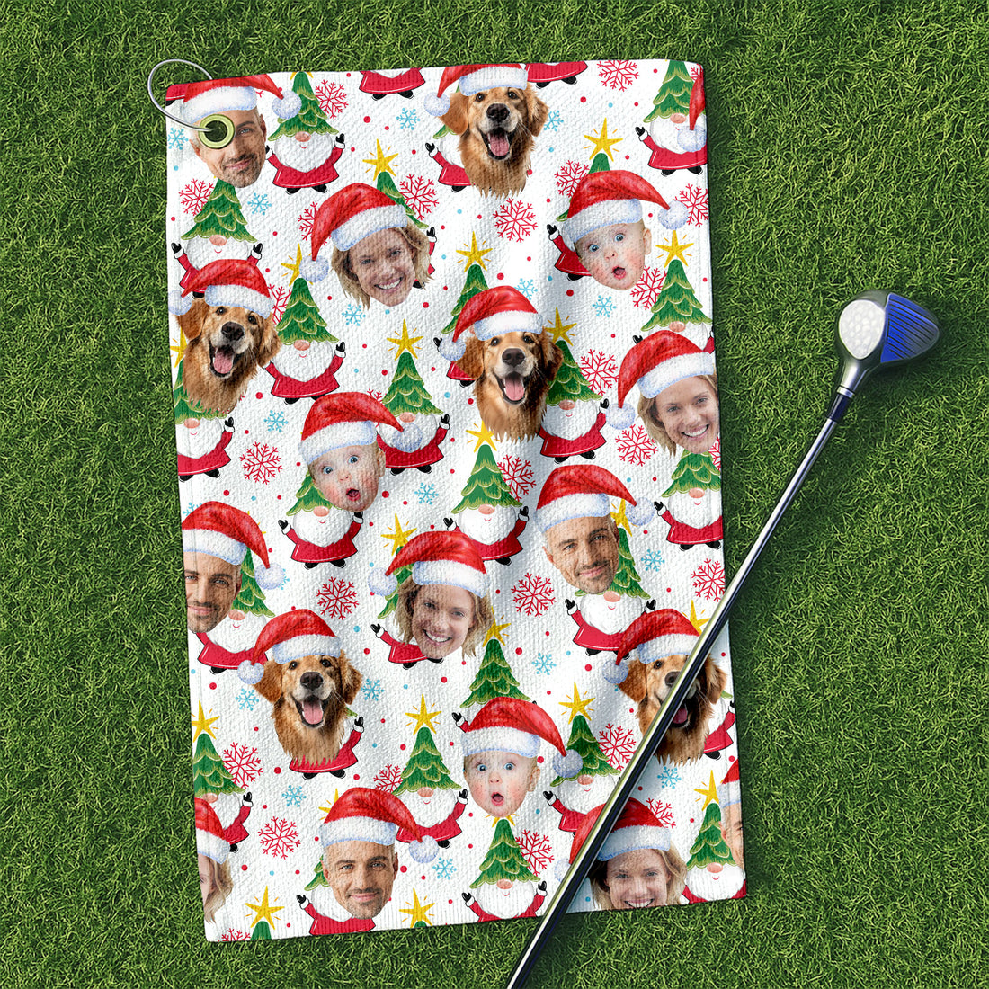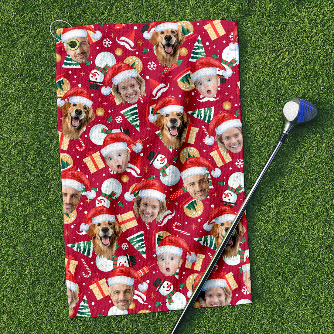 Custom Face Christmas Icons Red Golf Towels, Christmas Golf Gift, Custom Golf Accessories