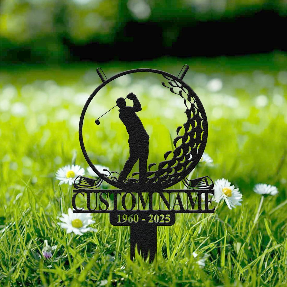 Custom Golf Memorial Metal Grave Marker, Outdoor Garden Decor, Golfer Memorial Gift