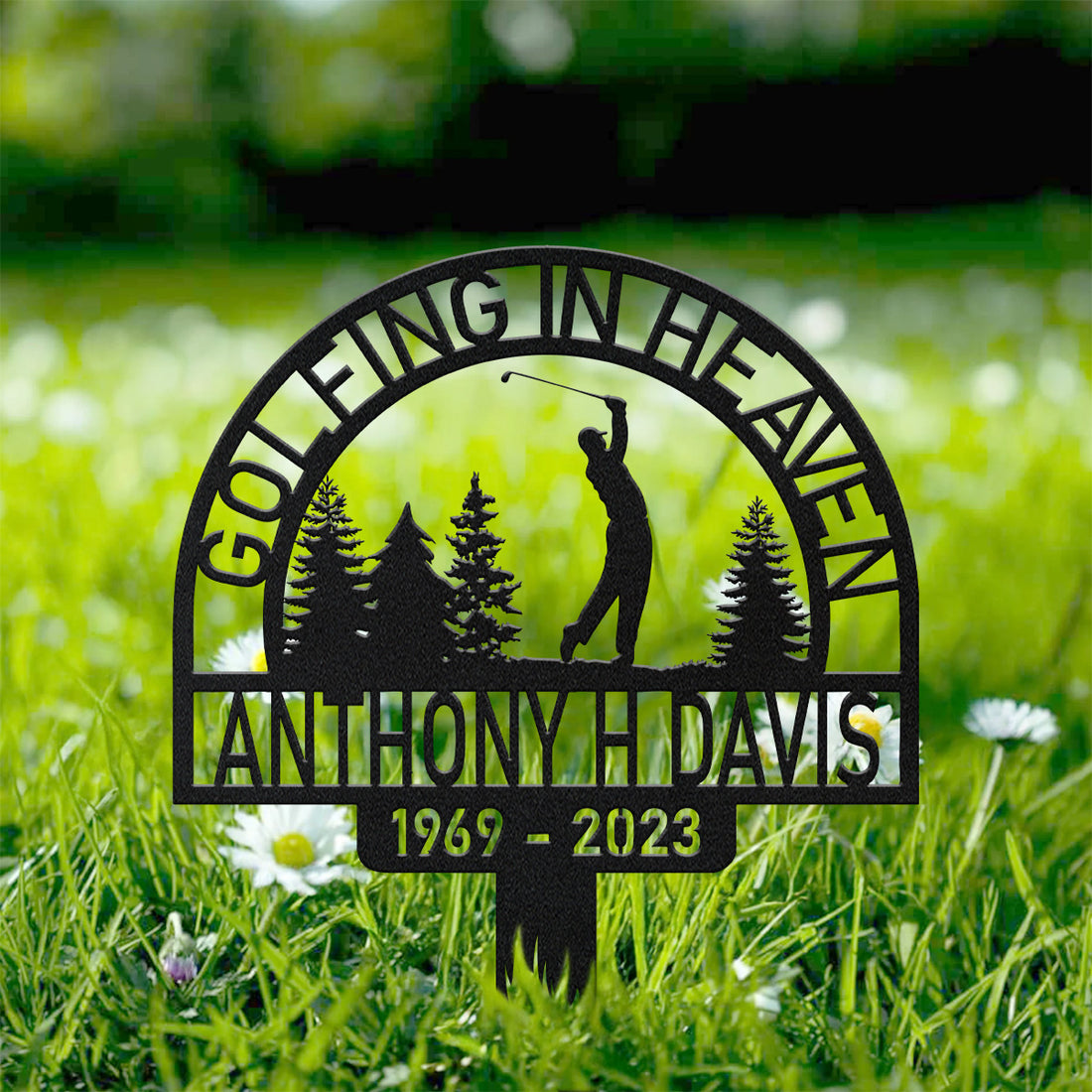 Golfing In Heaven Custom Golf Memorial Metal Name Signs, Outdoor Garden Decor, Golf Memorial Gift